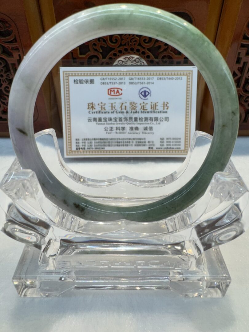 This beautiful jade bangle is a Grade A certified 100% natural piece.